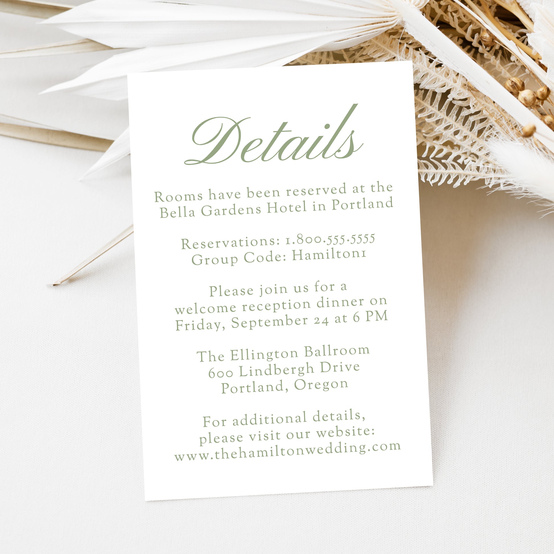 – 6" x 4" enclosure card (use for reception, accommodations, etc.)