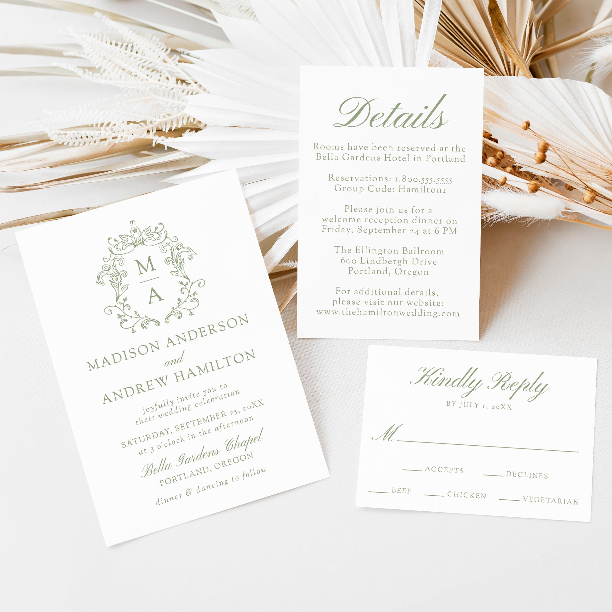 Elegant Green Chinoiserie Wedding Suite | Corjl Template