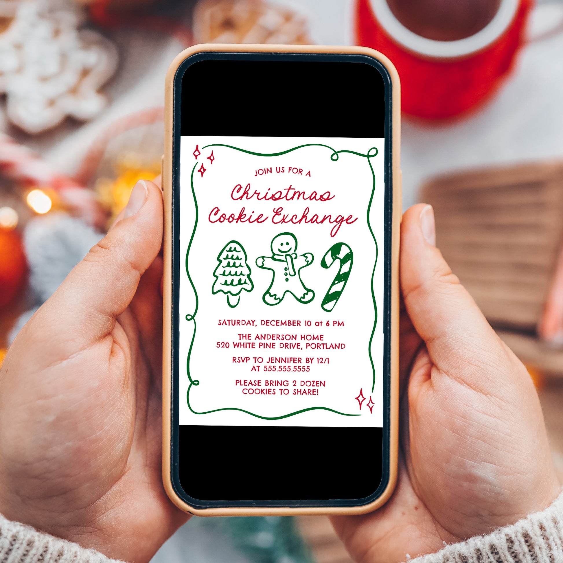 Whimsical Hand-Drawn Christmas Cookie Exchange Invitation | Corjl Template