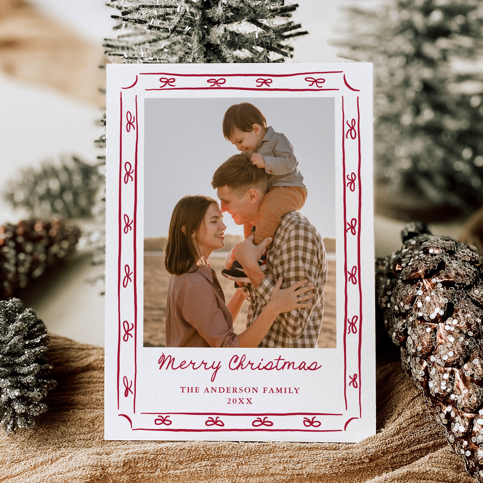 Whimsical Hand-Drawn Red Bow Frame 2 Photo Holiday Card | Corjl Template